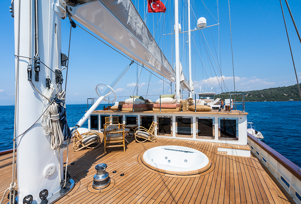 YAZZ is equipped with two Pirelli chase boats (one 42ft 900hp, and one 30ft 600hp), to transport all guests comfortably to